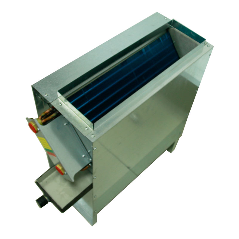 立式暗裝風機盤管機組是一組風機管盤,此機型機身超薄,不占用有效空間,厚度僅有216mm,可布置于窗下、墻內(nèi)或有裝飾板的凹口內(nèi),有上出風和前出風兩種形式,適用于會議室、大廳